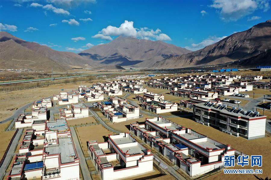 拉薩市堆龍德慶區(qū)古榮鄉(xiāng)榮瑪高海拔生態(tài)搬遷點一角(4月2日攝,無人機(jī)照片)。新華社記者 詹彥 攝
