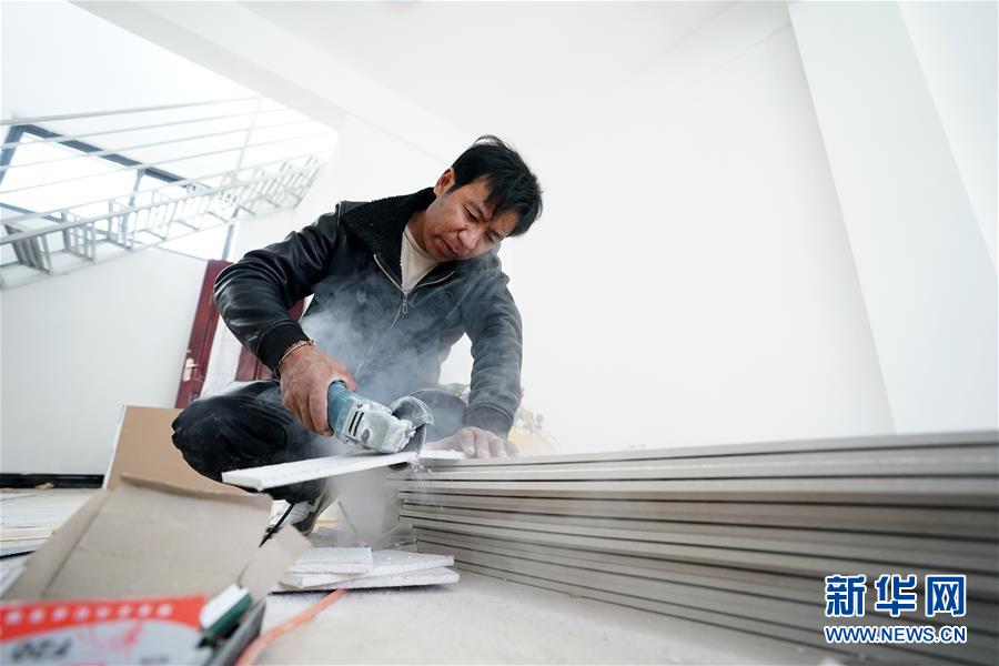 在拉薩市堆龍德慶區(qū)古榮鄉(xiāng)榮瑪高海拔生態(tài)搬遷點(diǎn)扶貧綜合門面房,尼加在為一家店鋪?zhàn)鲅b修(4月2日攝)。2018年,尼加搬遷到榮瑪高海拔生態(tài)搬遷點(diǎn)后,和朋友合伙從事裝修工作。新華社記者 詹彥 攝