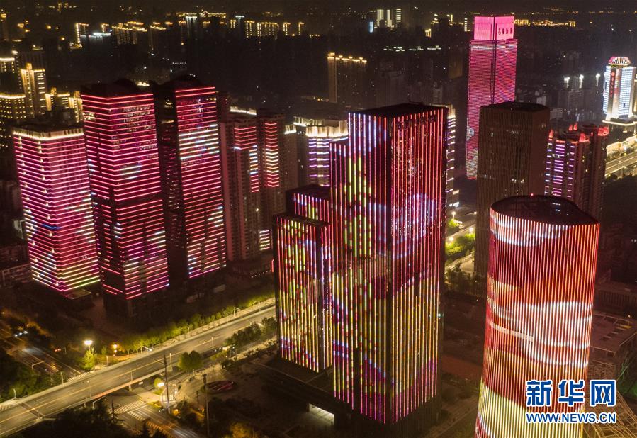 4月8日零時起,武漢市正式解除離漢離鄂通道管控措施,全市景觀照明開啟(無人機(jī)拍攝)。新華社記者程敏攝