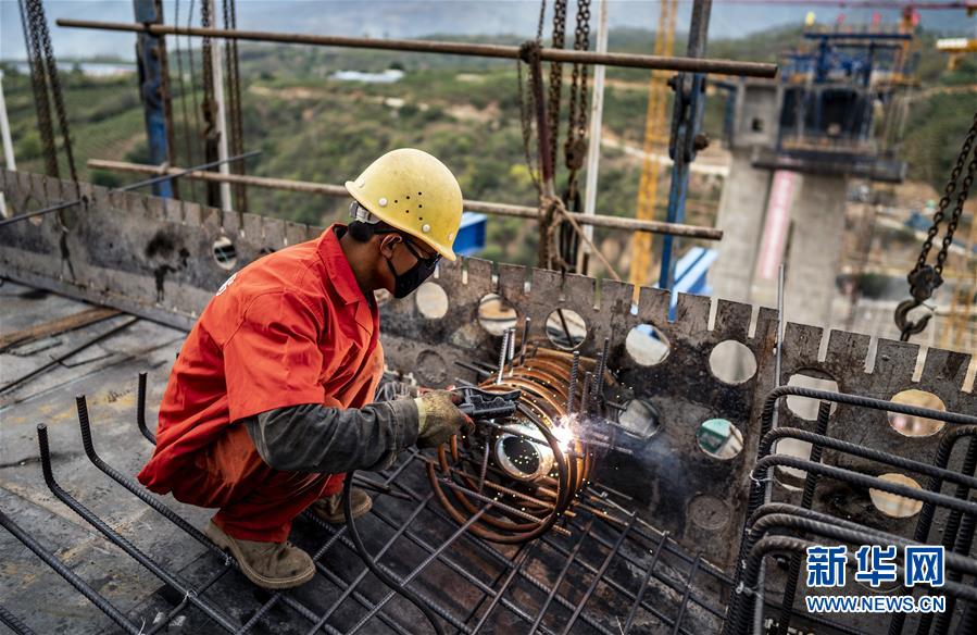在位于普洱市的木乃河雙線特大橋工程現(xiàn)場,工人在施工作業(yè)(4月12日攝)。新華社記者秦晴攝