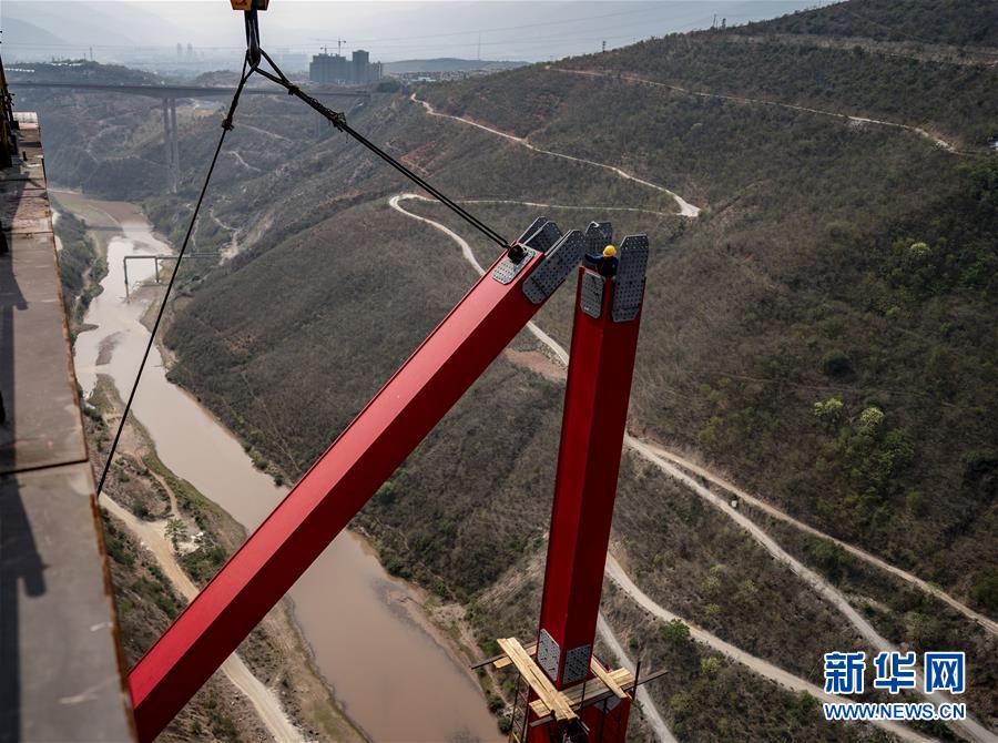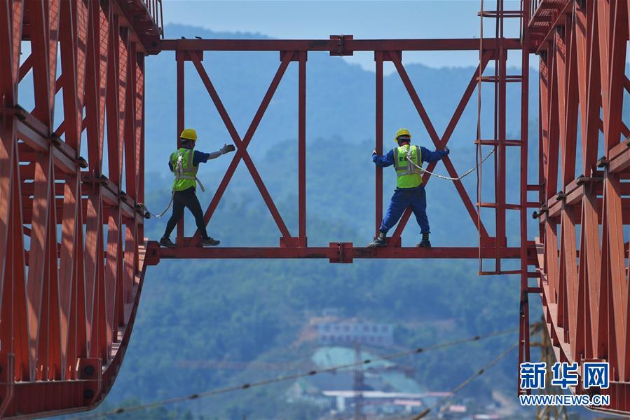 4月8日清晨,工人在中老鐵路元江特大橋上進(jìn)行鋼桁梁架設(shè)作業(yè)(無人機(jī)照片)。4月7日,中老鐵路全線重點(diǎn)控制性工程——元江特大橋迎來關(guān)鍵節(jié)點(diǎn),主橋鋼桁梁正式“邁”過154米高的主橋墩,這是世界同類鐵路橋梁第一高墩。元江特大橋位于云南省元江縣,采用上承式連續(xù)鋼桁梁跨越峽谷,全長832.2米,建成后,其249米的主跨也將刷新國內(nèi)同類橋梁跨度紀(jì)錄。新華社記者江文耀攝