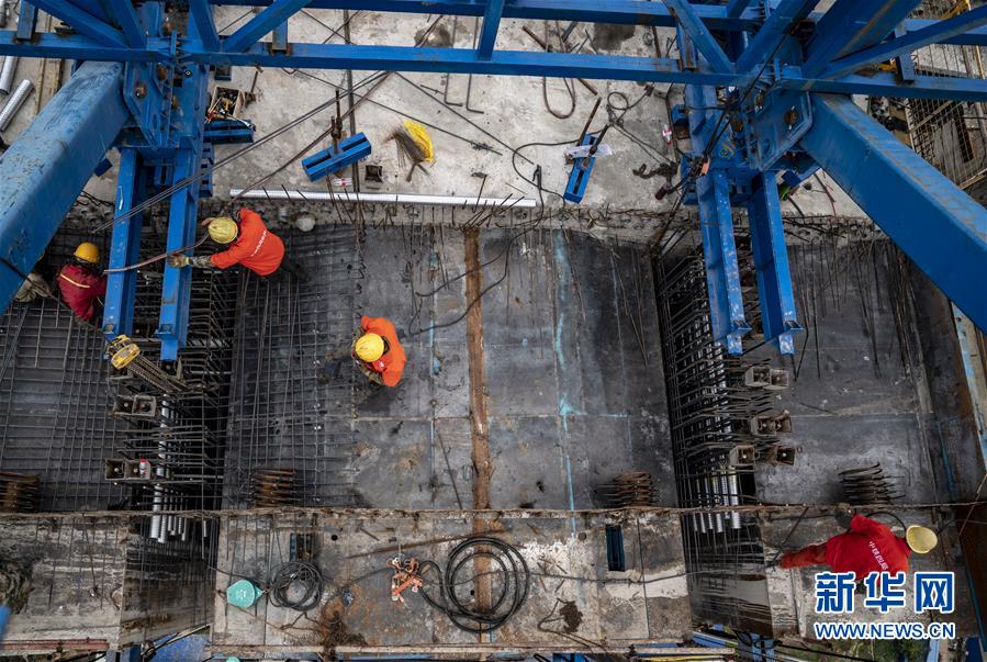4月8日,中鐵四局的工人們進(jìn)行鋼桁梁架設(shè)作業(yè)。新華社記者江文耀攝