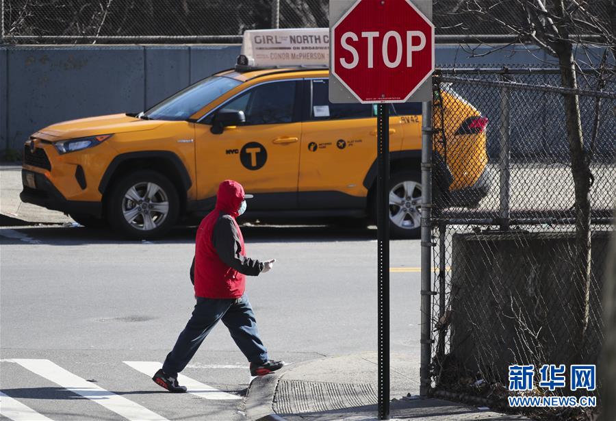 4月1日,行人走在美國(guó)紐約街頭。新華社記者王迎攝