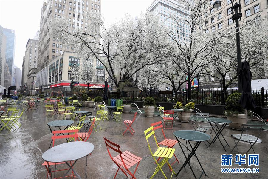 3月23日,美國紐約街頭的休息區(qū)空無一人。美國紐約州州長安德魯·科莫3月20日簽署針對該州1900多萬居民的行政令,規(guī)定全州所有非關(guān)鍵行業(yè)企業(yè)的工作人員居家辦公以緩解新冠肺炎疫情。該行政令將于當?shù)貢r間22日晚間生效。新華社記者王迎攝