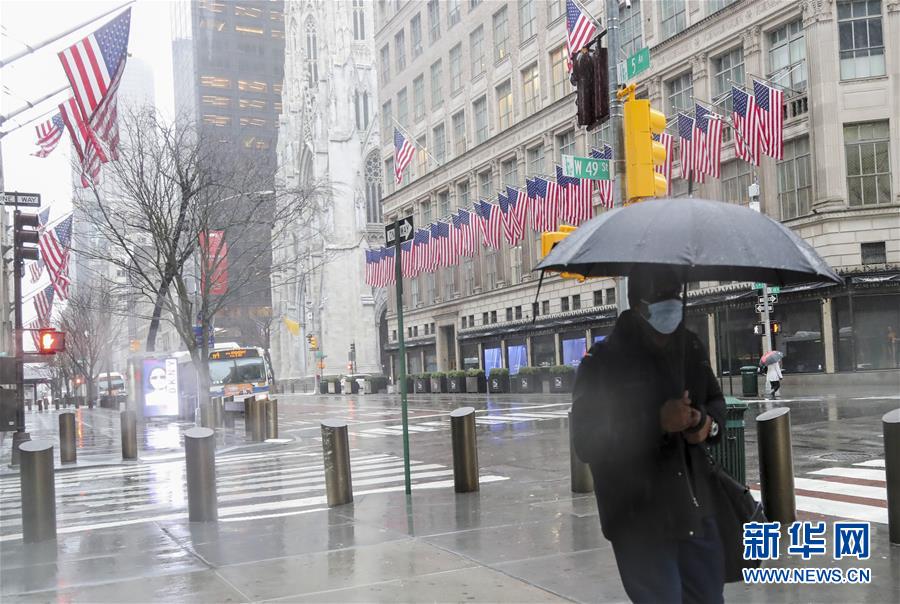 3月23日,美國(guó)紐約第五大道上行人稀少。新華社記者王迎攝