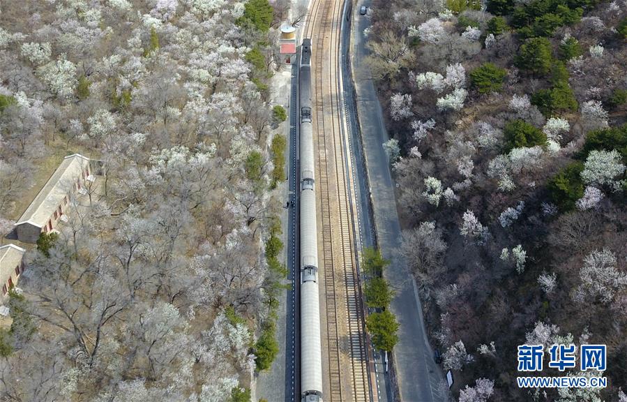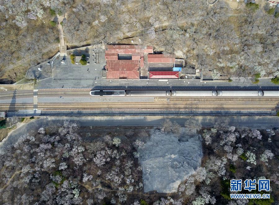 4月8日,北京青龍橋火車站附近春花盛開(無人機(jī)照片)。 當(dāng)日,北京青龍橋火車站附近,春花綻放,為這座百年火車站增添濃濃春意。 新華社記者張晨霖?cái)z