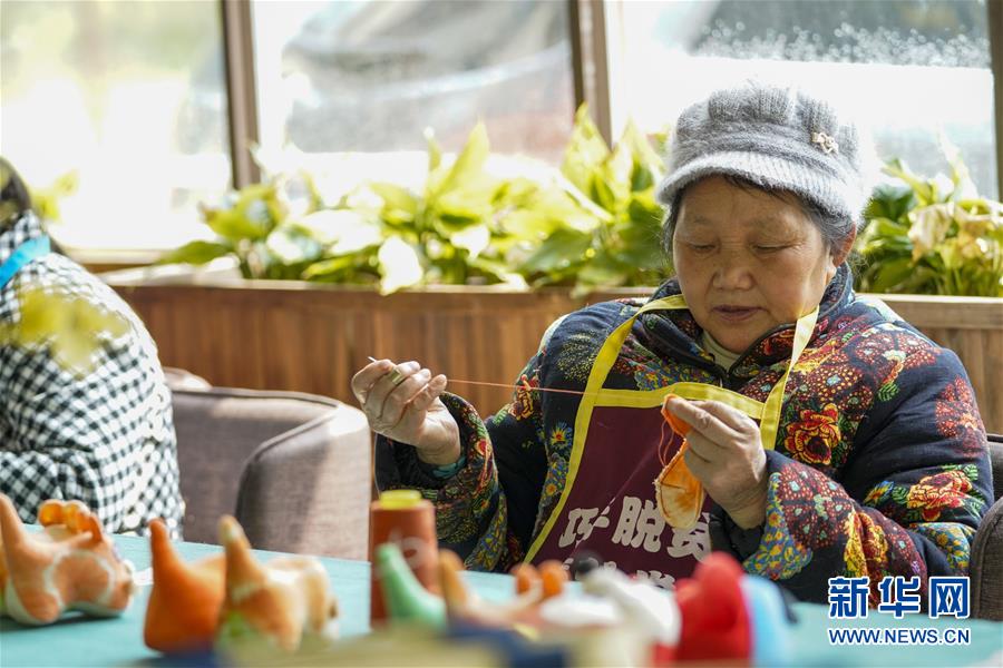 4月8日,在重慶石柱中益鄉(xiāng)巾幗扶貧工坊,當(dāng)?shù)貗D女縫制土家族風(fēng)情布老虎。近年來,重慶市石柱土家族自治縣中益鄉(xiāng)在重慶市婦聯(lián)的幫助下,以當(dāng)?shù)胤沁z傳統(tǒng)技藝作為結(jié)合點(diǎn),把扶貧與扶志、扶智相結(jié)合,通過引進(jìn)外來文創(chuàng)企業(yè)對留守婦女、貧困及殘疾人群進(jìn)行刺繡培訓(xùn),設(shè)立巾幗扶貧工坊等多種形式,幫助當(dāng)?shù)卮迕駥崿F(xiàn)就業(yè)增收。據(jù)介紹,巾幗扶貧工坊運(yùn)行以來,為當(dāng)?shù)仃懤m(xù)開發(fā)出土家族布老虎、手提袋、餐墊繡邊、創(chuàng)意相框等一系列文創(chuàng)產(chǎn)品,幫助參加巾幗扶貧工坊的留守婦女和貧困村民實現(xiàn)月均增收近千元。新華社記者劉潺攝