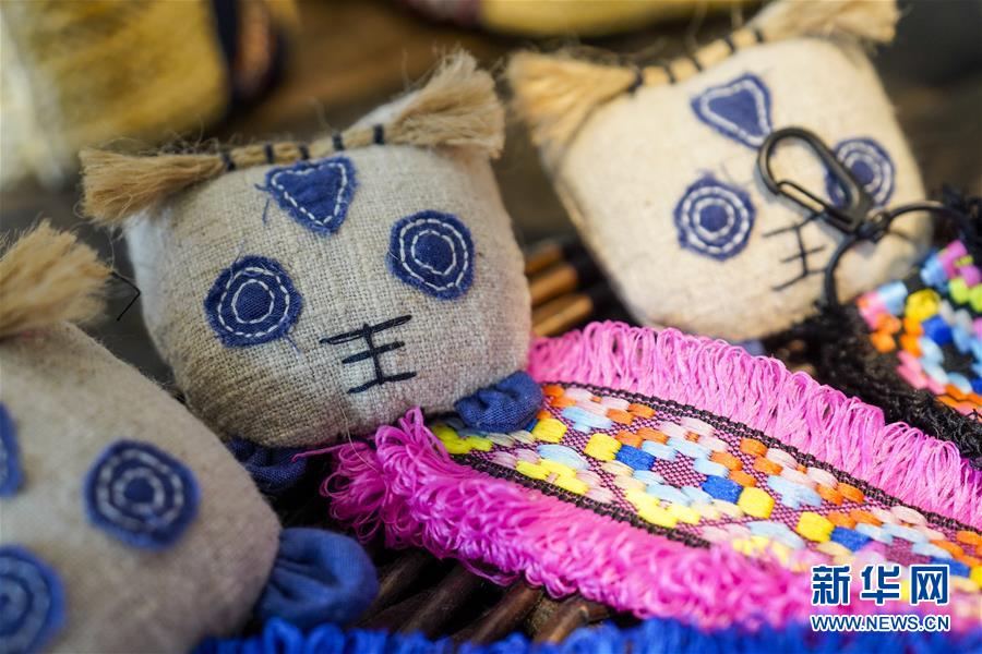 這是重慶石柱中益鄉(xiāng)巾幗扶貧工坊內(nèi)展示的當(dāng)?shù)貗D女制作的土家族風(fēng)情鑰匙扣(4月8日攝)。近年來,重慶市石柱土家族自治縣中益鄉(xiāng)在重慶市婦聯(lián)的幫助下,以當(dāng)?shù)胤沁z傳統(tǒng)技藝作為結(jié)合點(diǎn),把扶貧與扶志、扶智相結(jié)合,通過引進(jìn)外來文創(chuàng)企業(yè)對(duì)留守婦女、貧困及殘疾人群進(jìn)行刺繡培訓(xùn),設(shè)立巾幗扶貧工坊等多種形式,幫助當(dāng)?shù)卮迕駥?shí)現(xiàn)就業(yè)增收。據(jù)介紹,巾幗扶貧工坊運(yùn)行以來,為當(dāng)?shù)仃懤m(xù)開發(fā)出土家族布老虎、手提袋、餐墊繡邊、創(chuàng)意相框等一系列文創(chuàng)產(chǎn)品,幫助參加巾幗扶貧工坊的留守婦女和貧困村民實(shí)現(xiàn)月均增收近千元。新華社記者劉潺攝