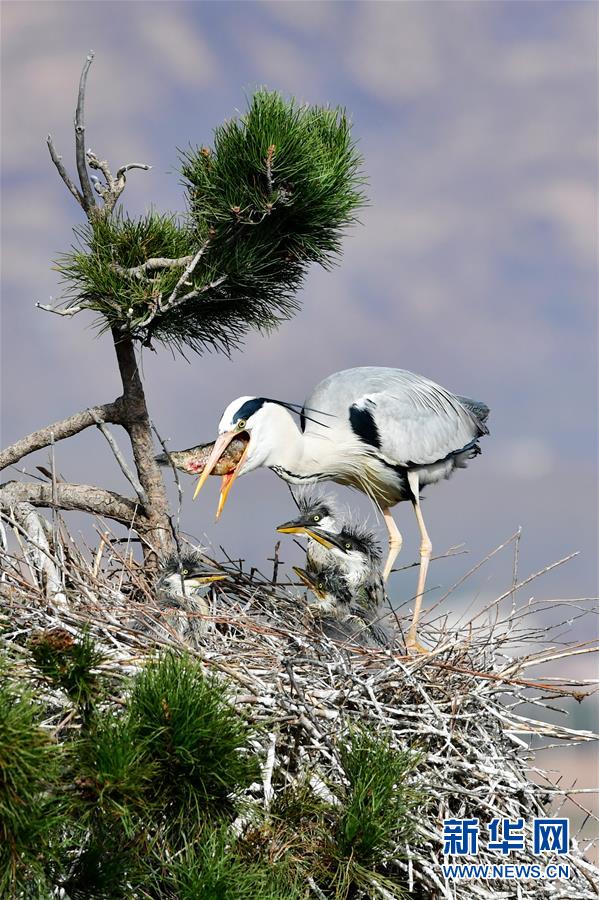 春日,大批蒼鷺在山西省呂梁市方山縣積翠鄉(xiāng)的樹林之中飛舞嬉戲,構(gòu)成一幅幅和諧生態(tài)畫卷。新華社發(fā)(劉亮亮攝)