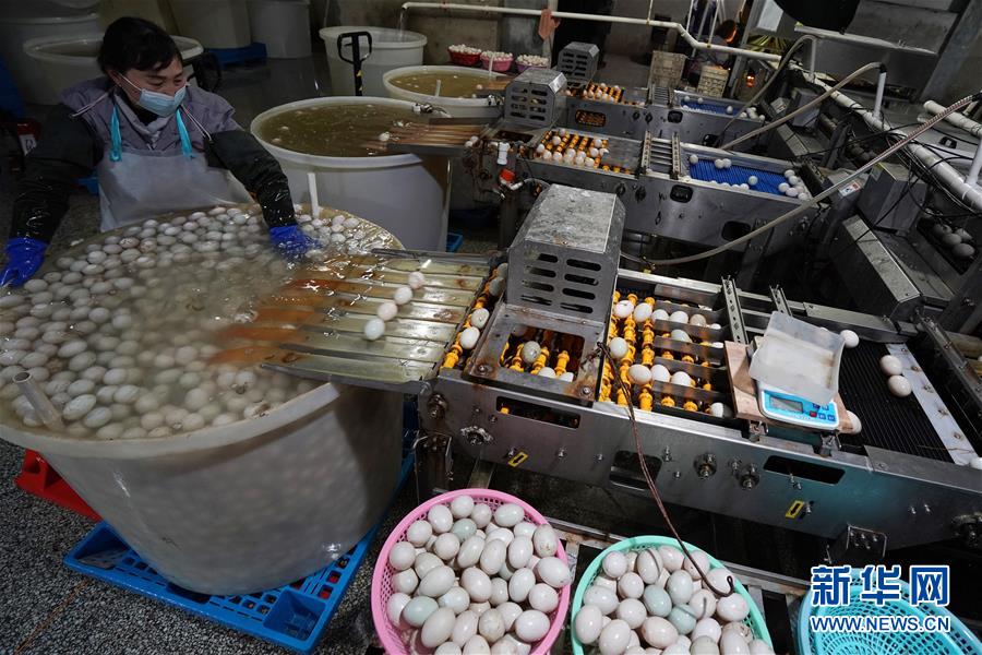江蘇高郵鴨集團的工作人員在生產(chǎn)車間內(nèi)清洗分揀鴨蛋(4月15日攝)?!案哙]鴨蛋”是江蘇高郵的特色農(nóng)業(yè)名片。近年來,當?shù)卦诹挤N繁育、生態(tài)養(yǎng)殖、產(chǎn)品加工等方面加大力度,推動高郵鴨蛋品牌化建設(shè),讓小鴨蛋成為帶動農(nóng)戶致富的大產(chǎn)業(yè)。2019年,高郵市共計生產(chǎn)熟制鴨蛋產(chǎn)品近11.2億枚,年產(chǎn)值近17.68億元。新華社記者韓瑜慶攝