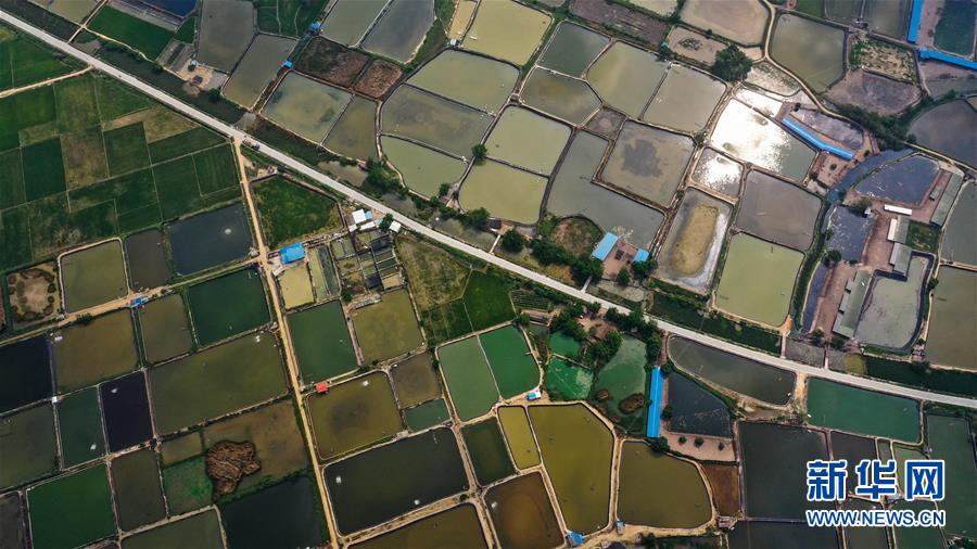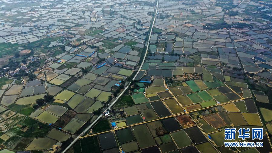 新華社照片,合浦(廣西),2020年4月21日鳥瞰廣西合浦春色這是4月21日拍攝的合浦縣境內(nèi)的春日風(fēng)光(無(wú)人機(jī)照片)。暮春時(shí)節(jié),從空中俯瞰廣西北海市合浦縣大地,河流、稻田、蝦塘、道路、村莊星羅棋布、色彩斑斕,美不勝收。新華社記者張愛林?jǐn)z