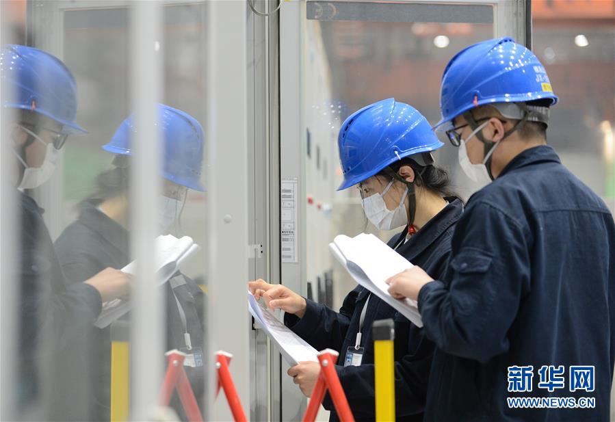 4月24日,技術(shù)人員在施工現(xiàn)場(chǎng)進(jìn)行設(shè)備檢查。新華社記者韓曉雨攝