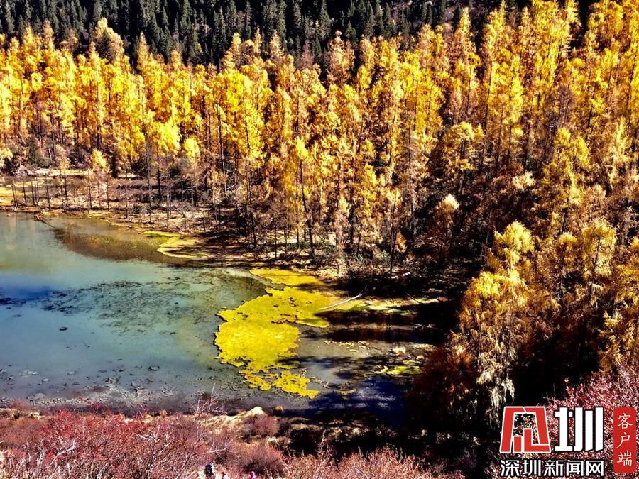 溝里有大片的落葉松、杜鵑和云杉林,雪山、海子、濕地、河流等景觀應(yīng)有盡有,唯獨(dú)沒有公路,只能沿木棧道徒步游覽。李仁奇攝