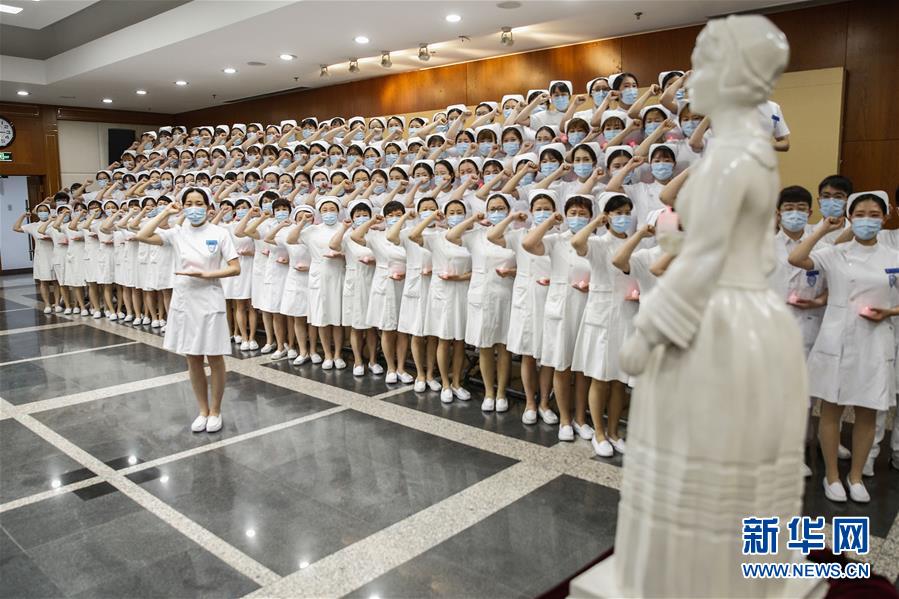 4月26日,北京大學(xué)人民醫(yī)院新入職護(hù)士參加授帽儀式時重溫南丁格爾誓言。當(dāng)日,北京大學(xué)人民醫(yī)院為97名2019屆新入職護(hù)士舉行隆重莊嚴(yán)的授帽儀式和重溫南丁格爾誓言的活動,以此紀(jì)念南丁格爾誕辰200周年和即將到來的“國際護(hù)士節(jié)”。活動還邀請了5名援鄂國家醫(yī)療隊護(hù)士代表分享戰(zhàn)“疫”故事。新華社記者張玉薇攝