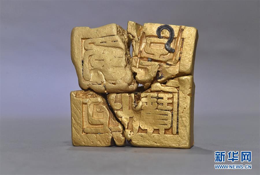 這是發(fā)掘出水的“蜀世子寶”金印(4月15日攝)。新華社記者劉坤攝