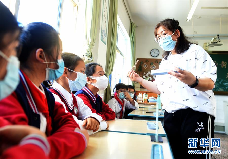 4月30日,諸暨市暨陽(yáng)小學(xué)五年級(jí)4班班主任宣明霞在主題班會(huì)上向?qū)W生講解家庭用餐使用公筷公勺的重要性。當(dāng)日,浙江省諸暨市暨陽(yáng)小學(xué)五年級(jí)4班開展“公筷公勺新家風(fēng)”主題班會(huì)活動(dòng),通過海報(bào)設(shè)計(jì)、情景劇表演等強(qiáng)化孩子們使用公筷公勺的意識(shí),倡導(dǎo)文明用餐。新華社記者 韓傳號(hào) 攝