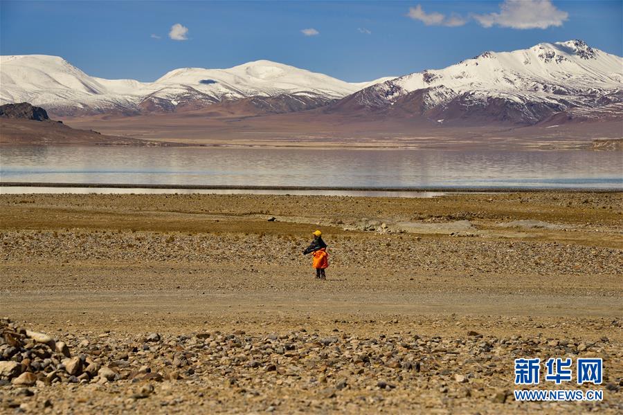 4月30日,一名藏族小孩在當(dāng)穹錯湖畔玩耍。當(dāng)穹錯地處西藏那曲市尼瑪縣南部,湖面海拔4475米。暮春時節(jié),湖水碧藍(lán)清亮,讓人仿佛置身仙境。新華社記者田金文攝