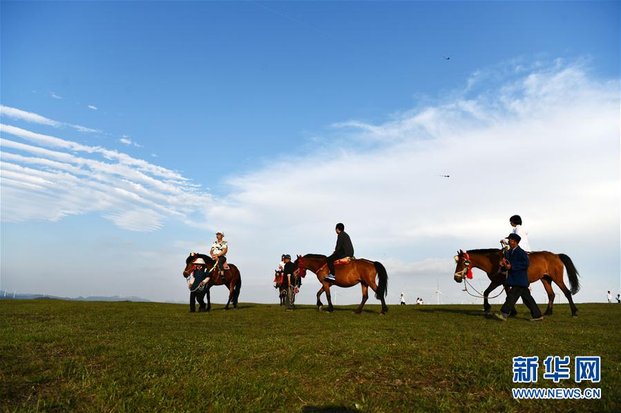5月3日,游客在貴州省龍里大草原景區(qū)騎馬觀光。“五一”小長(zhǎng)假期間,貴州省黔南布依族苗族自治州龍里大草原景區(qū)天氣怡人,高山草原風(fēng)光吸引游客前來(lái)游玩。新華社記者 楊文斌 攝