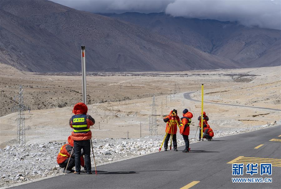 國測一大隊隊員在西藏定日縣曲當鄉(xiāng)境內(nèi)進行水準測量(4月18日攝)。水準測量是一種利用提供水平視線的儀器(如水準儀、水準標尺),測定地面不同點之間的高差,并以此推算高度的一種方法,是經(jīng)典大地測量的重要技術(shù)之一。在目前正在進行的2020珠峰高程測量中,部分國測一大隊隊員承擔了水準測量的任務。新華社記者孫非攝