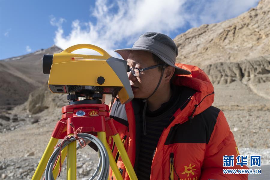 國(guó)測(cè)一大隊(duì)隊(duì)員楊明在西藏定日縣曲當(dāng)鄉(xiāng)境內(nèi)進(jìn)行水準(zhǔn)測(cè)量(5月4日攝)。水準(zhǔn)測(cè)量是一種利用提供水平視線的儀器(如水準(zhǔn)儀、水準(zhǔn)標(biāo)尺),測(cè)定地面不同點(diǎn)之間的高差,并以此推算高度的一種方法,是經(jīng)典大地測(cè)量的重要技術(shù)之一。在目前正在進(jìn)行的2020珠峰高程測(cè)量中,部分國(guó)測(cè)一大隊(duì)隊(duì)員承擔(dān)了水準(zhǔn)測(cè)量的任務(wù)。新華社記者普布扎西攝