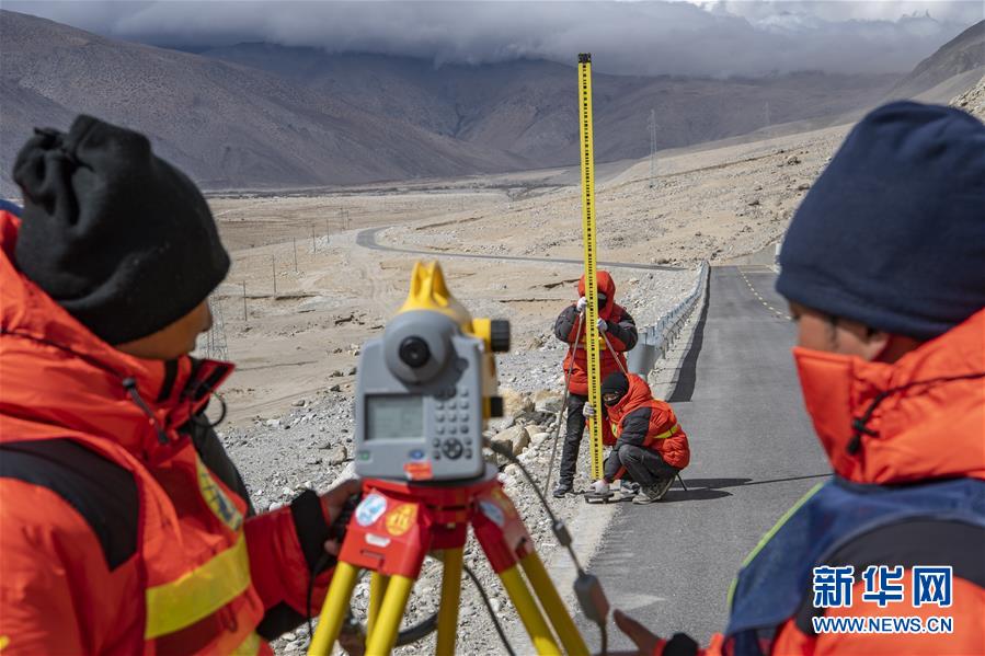 國(guó)測(cè)一大隊(duì)隊(duì)員在西藏定日縣曲當(dāng)鄉(xiāng)境內(nèi)進(jìn)行水準(zhǔn)測(cè)量(4月18日攝)。水準(zhǔn)測(cè)量是一種利用提供水平視線的儀器(如水準(zhǔn)儀、水準(zhǔn)標(biāo)尺),測(cè)定地面不同點(diǎn)之間的高差,并以此推算高度的一種方法,是經(jīng)典大地測(cè)量的重要技術(shù)之一。在目前正在進(jìn)行的2020珠峰高程測(cè)量中,部分國(guó)測(cè)一大隊(duì)隊(duì)員承擔(dān)了水準(zhǔn)測(cè)量的任務(wù)。新華社記者晉美多吉攝