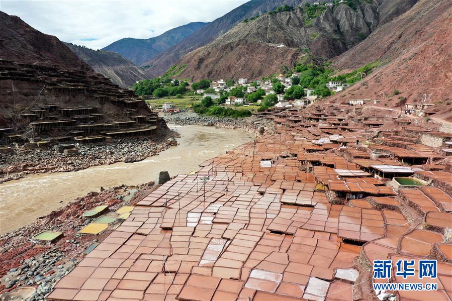 西藏芒康縣納西民族鄉(xiāng)加達(dá)村村民在鹽田里勞作(5月4日攝,無人機(jī)照片)。位于西藏昌都市芒康縣瀾滄江畔的古鹽田,至今仍保持最原始的手工曬鹽方式。據(jù)史料記載,早在唐朝時期這里就開始曬鹽。鹽田在瀾滄江兩岸依山而建,層層疊疊,錯落有致。新華社記者王澤昊攝