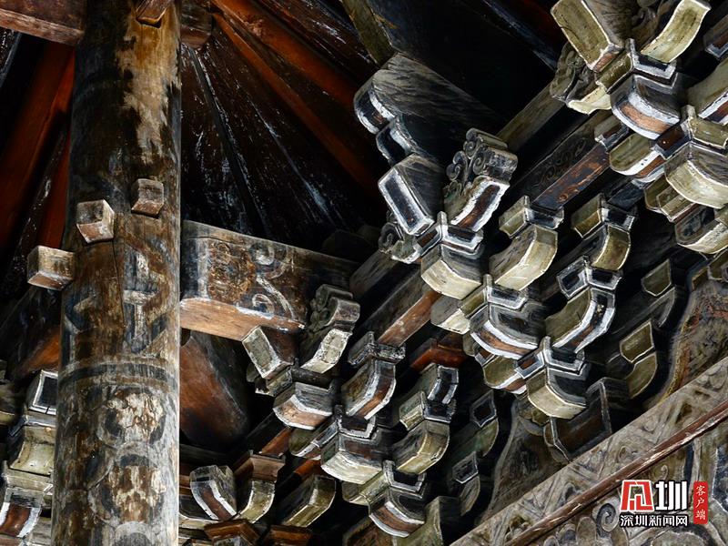 報(bào)恩寺的建筑博采眾長(zhǎng),在建筑風(fēng)格上處處體現(xiàn)了宋元向明清形制的過渡、具有承前啟后的特點(diǎn)。屋頂形式多樣:?jiǎn)伍軕疑绞?、歇山式、重檐歇山式、攢尖頂、卷宗棚頂?shù)?。斗拱樣式古樸,全寺現(xiàn)有斗拱二十余種,被古建筑專家譽(yù)為“斗拱的搖籃”。而所有柱、額、梁、枋、櫞、檁等木構(gòu)件,皆用珍貴的楠木,從古至今,有蟲不蛀、鳥不棲、不結(jié)蛛網(wǎng)之奇,被中外古建筑專家稱為“明初罕見之遺物”,“獨(dú)具匠心之杰作”。李仁奇攝