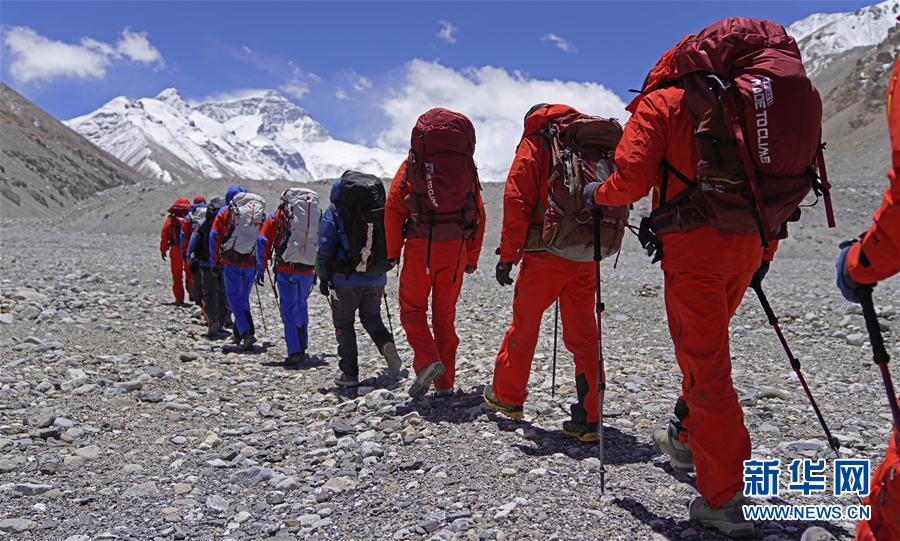 5月6日,登山隊員們向更高海拔進發(fā)。新華社記者普布扎西攝