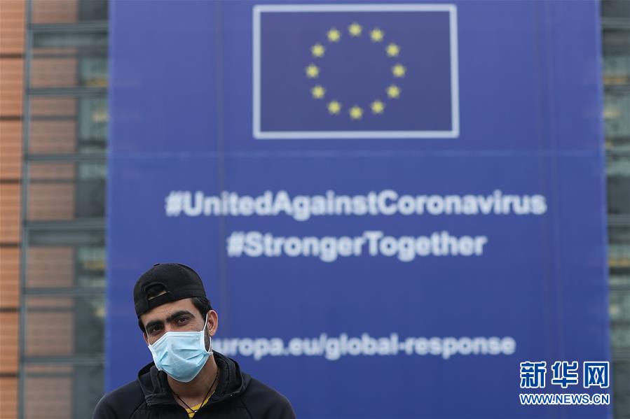 歐盟委員會(huì)5月6日預(yù)測(cè),受新冠疫情影響,2020年歐洲經(jīng)濟(jì)將出現(xiàn)“歷史性衰退”,歐盟經(jīng)濟(jì)將萎縮7.5%,歐元區(qū)經(jīng)濟(jì)將萎縮7.75%。這是5月4日在比利時(shí)布魯塞爾的歐盟委員會(huì)總部大廈前拍攝的一名戴口罩的男子。新華社記者鄭煥松攝