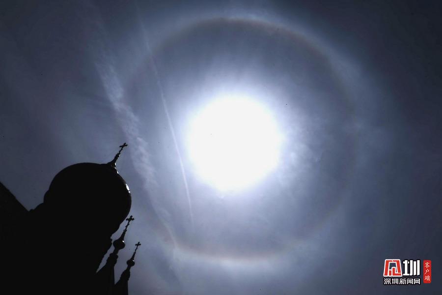 2020年5月8日,哈爾濱主城區(qū)上空美輪美奐的巨型超大日暈。