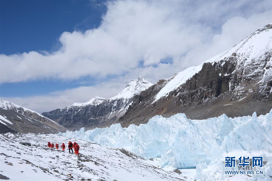 部分隊(duì)員在撤回大本營(yíng)途中(5月9日攝)。 因天氣原因,2020珠峰高程測(cè)量登山隊(duì)將分兩批從海拔6500米的前進(jìn)營(yíng)地撤回大本營(yíng)進(jìn)行休整。修路隊(duì)和運(yùn)輸隊(duì)繼續(xù)留在前進(jìn)營(yíng)地等待好天氣,以通過北坳冰壁,完成修路和運(yùn)輸任務(wù)。根據(jù)研判,此次登頂測(cè)量時(shí)間將比原計(jì)劃推后。 新華社記者 孫非 攝
