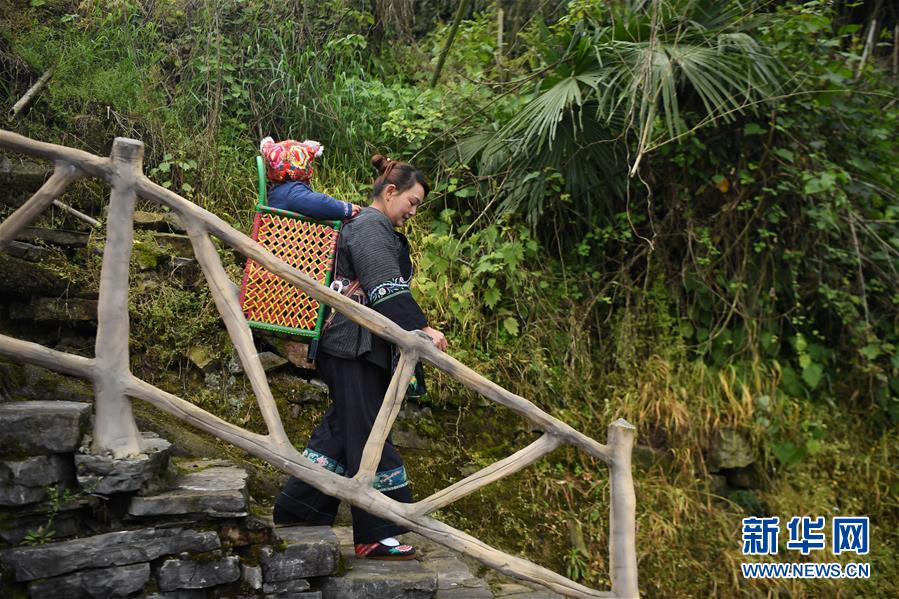 吳美金背著孫子走在十八洞村中,準備前往村里的苗繡合作社(4月24日攝)。1967年出生的吳美金,1992年嫁入飛蟲村(現(xiàn)十八洞村飛蟲寨)時,只有爛泥路的飛蟲村不僅田土少,掙錢活路也少,生活十分困難。2014年,吳美金加入了十八洞村苗繡特產(chǎn)農(nóng)民專業(yè)合作社,從小就會的苗繡傳統(tǒng)手藝如今成了家庭增收的法寶,不僅在家門口就把錢掙了,同時還能照顧年幼的孫子孫女?!艾F(xiàn)在的日子,比年輕的時候好多了?!眳敲澜鹫f。新華社記者薛宇舸攝