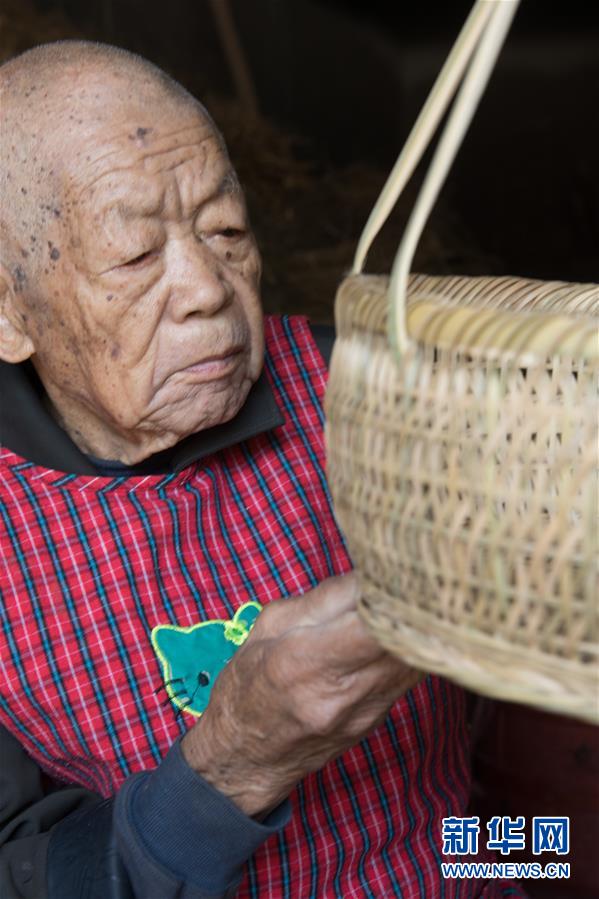 5月12日,浙江諸暨龍溪村的百歲老人蔡渭東在家中查看一個(gè)剛編的竹籃。浙江諸暨東和鄉(xiāng)龍溪村有一位102歲的老人蔡渭東,他從12歲開(kāi)始拜師學(xué)藝,做了90年的篾匠,如今依然耳聰目明,每天堅(jiān)持編織篾器。蔡渭東老人說(shuō)他舍不得丟掉這份老手藝,也希望年輕人能傳承下去。新華社記者翁忻旸攝