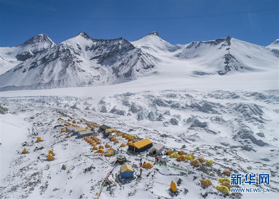 這是海拔6500米的珠峰前進(jìn)營(yíng)地(5月10日無(wú)人機(jī)照片)。