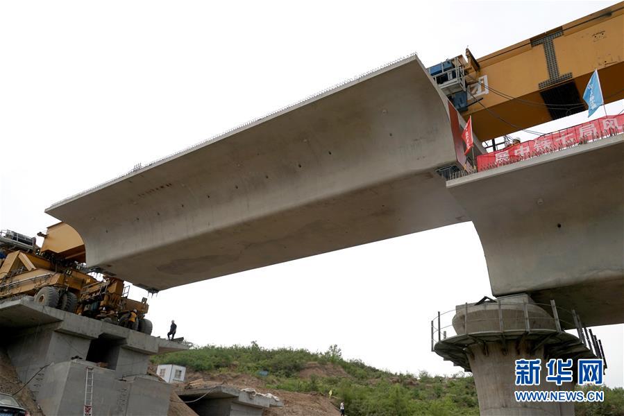 5月13日,運(yùn)架一體機(jī)在位于河南焦作的施工現(xiàn)場進(jìn)行架梁作業(yè)。 當(dāng)日,隨著最后一榀長24米、重552噸的箱梁架設(shè)就位,太焦高鐵全線橋梁架設(shè)完成。從山西太原到河南焦作的太焦高鐵是國家規(guī)劃建設(shè)的“八縱八橫”高速鐵路網(wǎng)的重要組成部分,計(jì)劃2020年底建成通車。 新華社記者李安攝