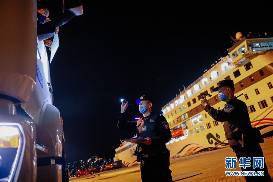 5月13日,山東威海出入境邊防檢查站民警在核對外籍船員證件。面對疫情防控要求,山東威海出入境邊防檢查站嚴(yán)密勤務(wù)組織、強(qiáng)化數(shù)據(jù)研判,加強(qiáng)口岸、碼頭的日常巡查,對國際船舶和船員強(qiáng)化監(jiān)管,全力打好疫情防輸入攻堅(jiān)戰(zhàn)。據(jù)統(tǒng)計(jì),自2月份以來,威海邊檢站共服務(wù)出入境(港)船舶400余艘次,出入境(港)人員7000多人次,為180多個(gè)集裝箱防疫物資提供通關(guān)便利。新華社記者朱崢攝