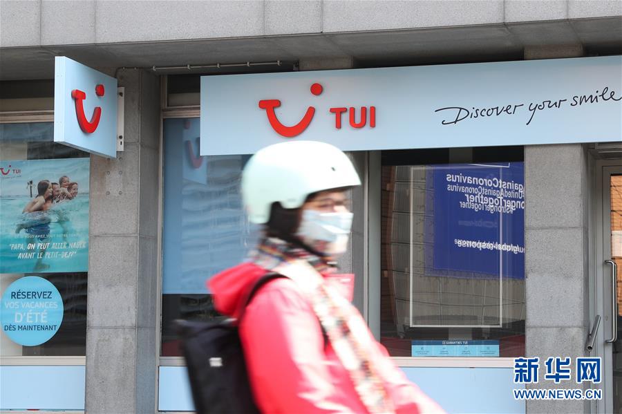 5月13日,一名女子經(jīng)過比利時布魯塞爾的一家途易集團的門店。受新冠疫情沖擊,旅游公司面臨財務(wù)壓力。歐洲最大旅游公司途易集團13日宣布準備裁員8000人以控制運營成本。途易集團總部位于德國,擁有旅行社、酒店、航空、郵輪等服務(wù)。新華社記者鄭煥松攝