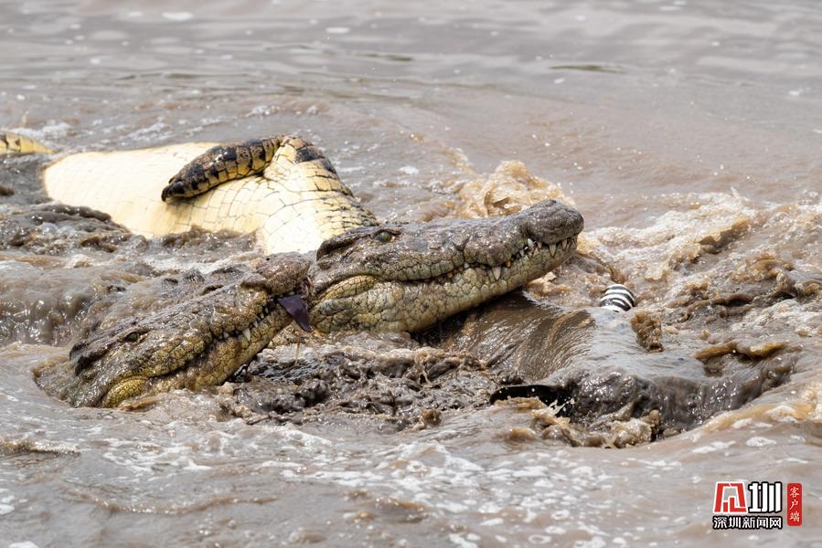 2020年5月20日?qǐng)?bào)道(具體拍攝時(shí)間不詳),印度攝影師Nimit Virdi在肯尼亞賽馬拉國(guó)家保護(hù)區(qū)中親眼目睹到鱷魚獵食的震撼畫面。