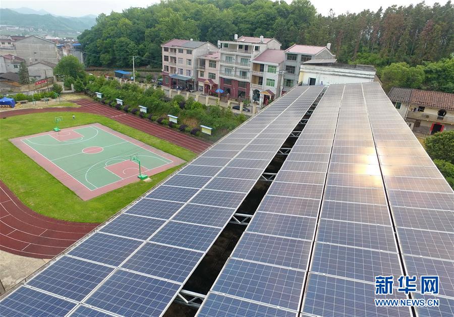這是5月13日在福建省建甌市小橋鎮(zhèn)陽澤村拍攝的光伏電站(無人機(jī)照片)。陽澤村光伏發(fā)電精準(zhǔn)扶貧項(xiàng)目裝機(jī)容量為50千瓦,年預(yù)計(jì)發(fā)電量5.4萬千瓦時。