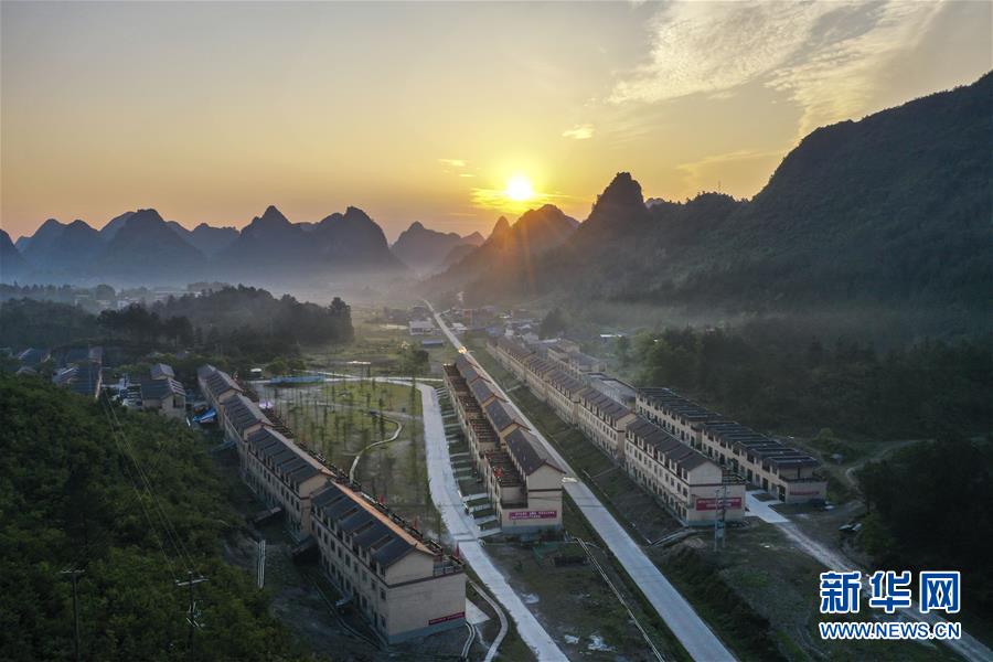 這是廣西南丹縣“千家瑤寨·萬戶瑤鄉(xiāng)”八圩瑤寨易地扶貧搬遷安置點(4月29日攝,無人機照片)。新華社記者曹祎銘攝
