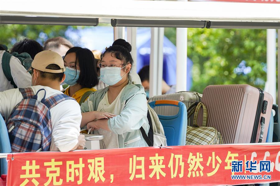 5月15日,在西南大學的返校學生報到點,學生在校內(nèi)轉(zhuǎn)運車上準備前往宿舍。當日,重慶西南大學迎來疫情以來首批返校大學生。據(jù)介紹,按照疫情防控的需要,重慶市高校2020年春季學期從5月11日起按照“一校一策”原則,實行錯峰錯時分批次有序開學復課。新華社記者劉潺攝