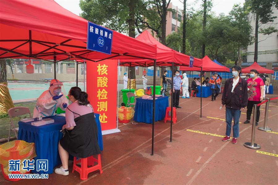 5月15日,在武漢東西湖區(qū)吳家山第一小學(xué)操場(chǎng)檢測(cè)點(diǎn),工作人員對(duì)市民進(jìn)行核酸檢測(cè)。近日,武漢將對(duì)全市市民有序開(kāi)展核酸檢測(cè),進(jìn)一步摸清無(wú)癥狀感染者底數(shù),進(jìn)而有效管控。新華社記者肖藝九攝