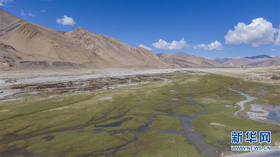 珠穆朗瑪峰國家級自然保護(hù)區(qū)里的濕地(5月16日攝,無人機(jī)照片)。新華社記者晉美多吉攝