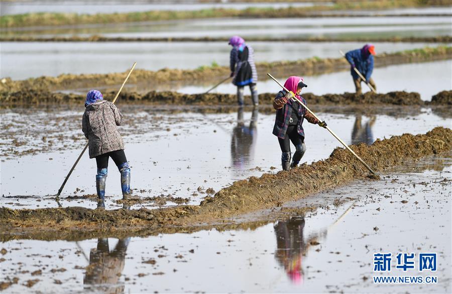 5月17日,在吉林省長(zhǎng)春市雙陽區(qū)徐家村,農(nóng)民在水稻田間耕作。