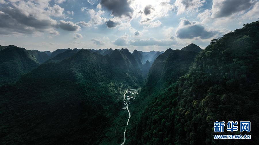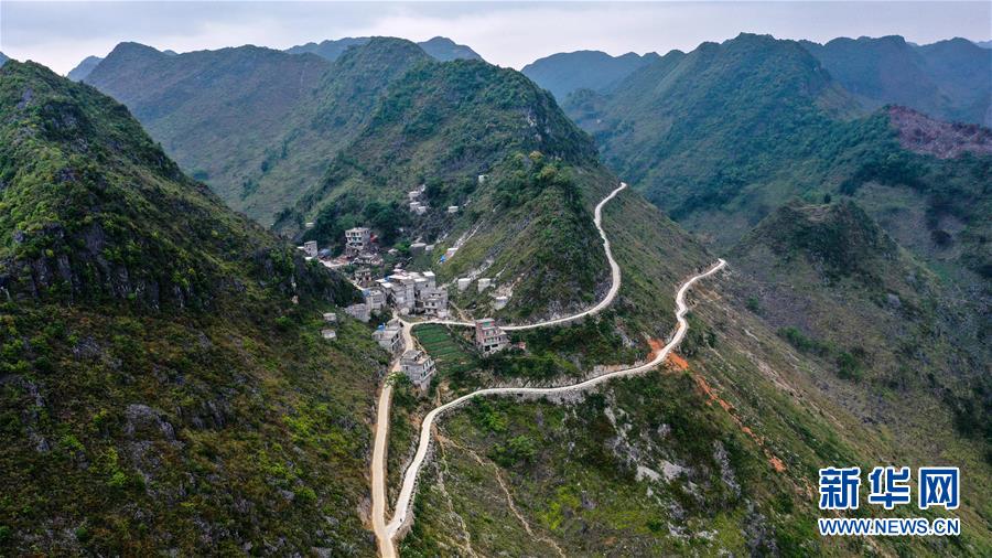 這是去年底通車的大化瑤族自治縣七百弄鄉(xiāng)江棟村那徐屯至弄獎屯公路(5月14日攝,無人機照片)。新華社記者曹祎銘攝