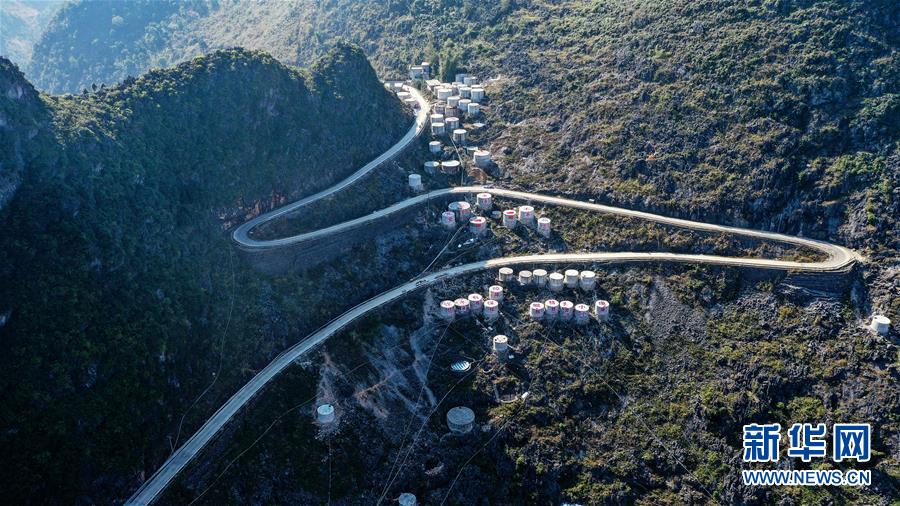 這是大化瑤族自治縣江南鄉(xiāng)上和村群眾修建的水柜(2019年12月12日攝,無人機照片)。新華社記者張愛林攝