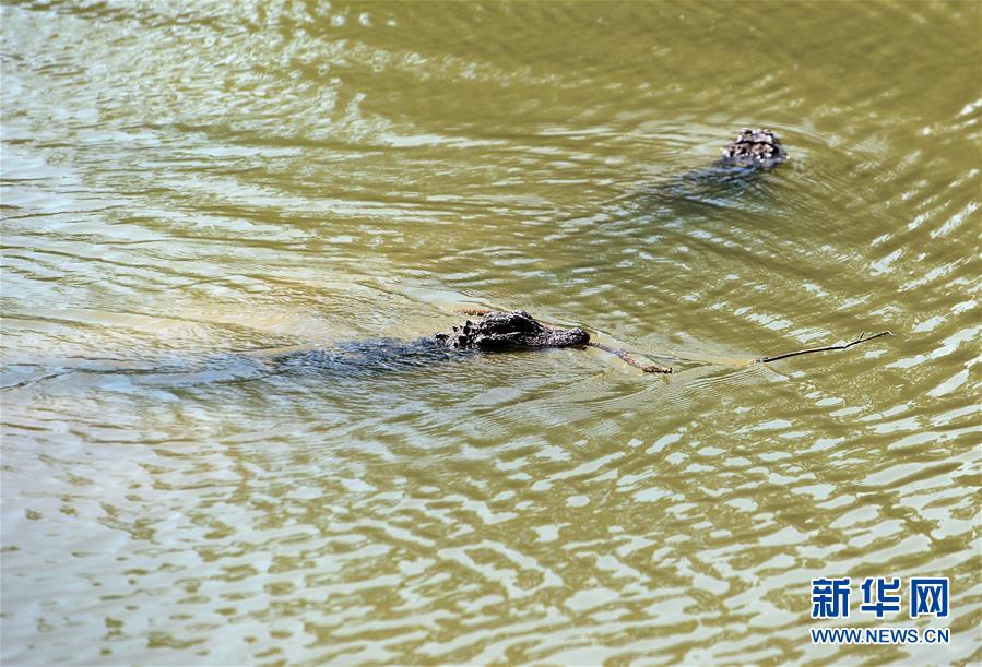 5月20日,放歸的揚子鱷在池塘中活動。當(dāng)日,安徽揚子鱷國家級自然保護區(qū)在安徽多地同時放歸揚子鱷,當(dāng)天共放歸人工繁育揚子鱷32條。該保護區(qū)計劃2020年野外放歸揚子鱷280條,剩余248條將在今后陸續(xù)放歸。新華社記者韓曉雨攝