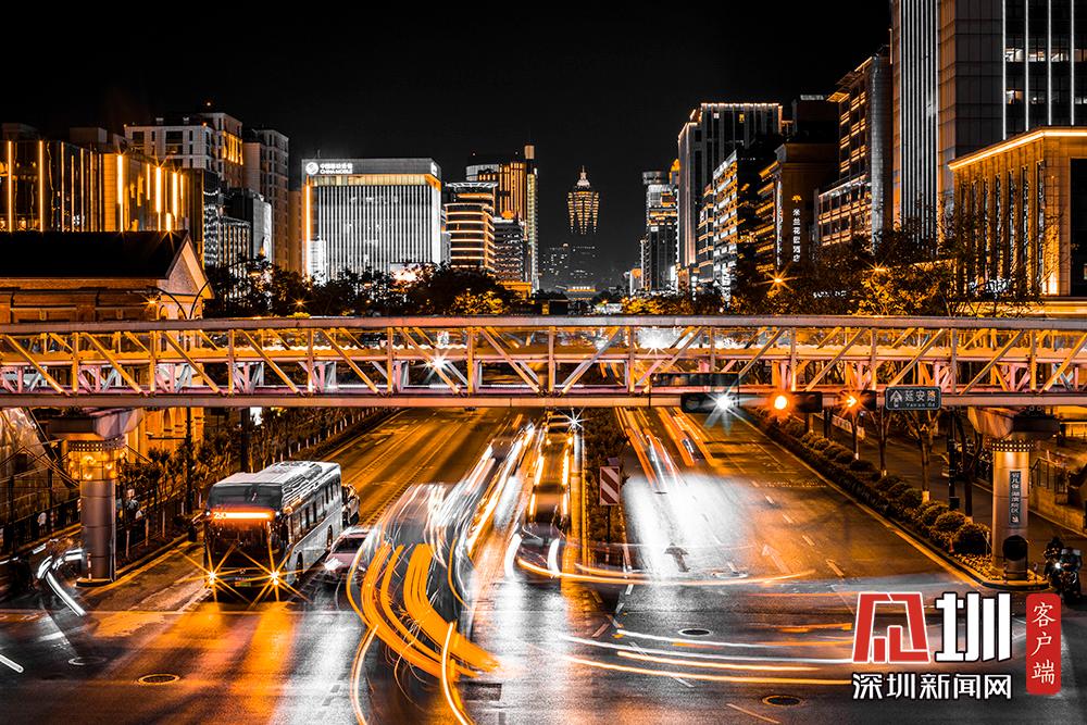杭州延安路天橋夜景 車水馬龍十分震撼