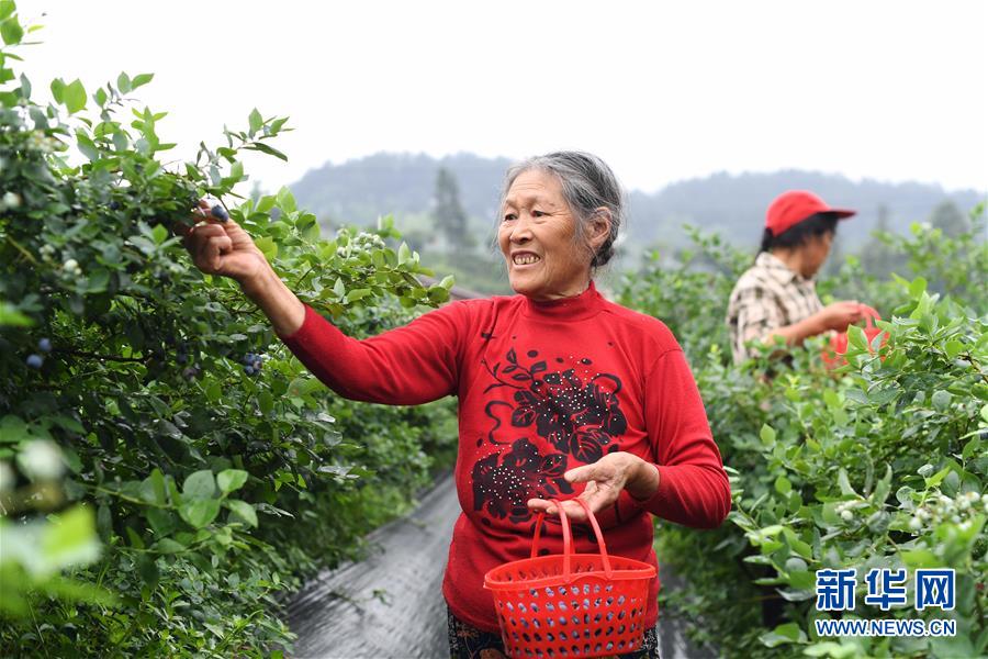 5月21日,村民在茨竹鎮(zhèn)大面坡村藍(lán)桂香園藍(lán)莓基地采摘藍(lán)莓。近日,位于重慶市渝北區(qū)茨竹鎮(zhèn)大面坡村的600余畝藍(lán)莓陸續(xù)進(jìn)入采摘期。近年來,茨竹鎮(zhèn)探索“公司+基地+農(nóng)戶”的模式,利用良好的自然條件,積極發(fā)展高山藍(lán)莓產(chǎn)業(yè),在取得良好經(jīng)濟(jì)效益的同時(shí),有效帶動(dòng)當(dāng)?shù)卮迕窬蜆I(yè)增收。新華社記者王全超攝