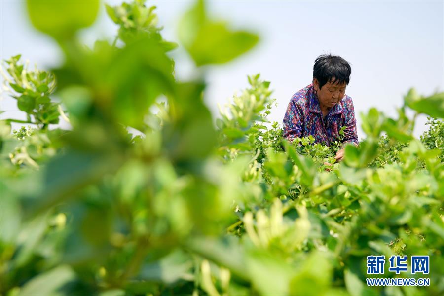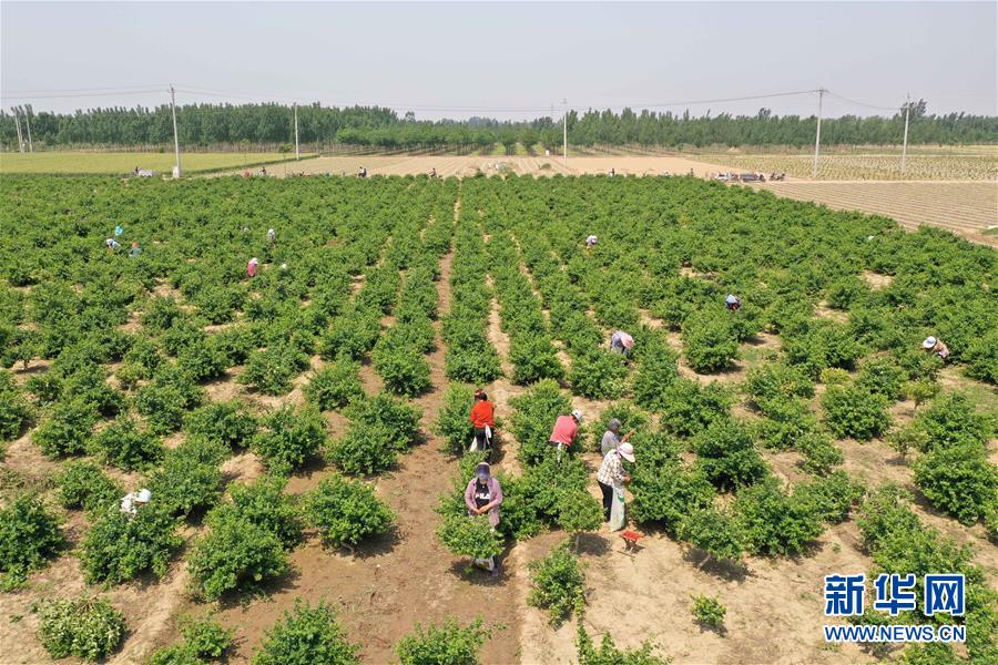5月21日,河北省清河縣農(nóng)墾金銀花種植專業(yè)合作社社員在采收金銀花(無(wú)人機(jī)照片)。2017年以來(lái),河北省清河縣在推進(jìn)農(nóng)業(yè)產(chǎn)業(yè)結(jié)構(gòu)調(diào)整過程中,結(jié)合市場(chǎng)需求,立足當(dāng)?shù)赝寥馈夂蛱攸c(diǎn),依托公司“訂單”引導(dǎo)農(nóng)民發(fā)展金銀花種植。目前,清河縣金銀花種植面積近2000畝,帶動(dòng)40多個(gè)村莊的2000余名農(nóng)民人均增收千元以上。新華社記者牟宇攝
